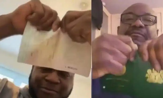 Two Nigerian men in diaspora have torn their Nigerian passport while complaining about the poor conduct of the 2023 general elections.