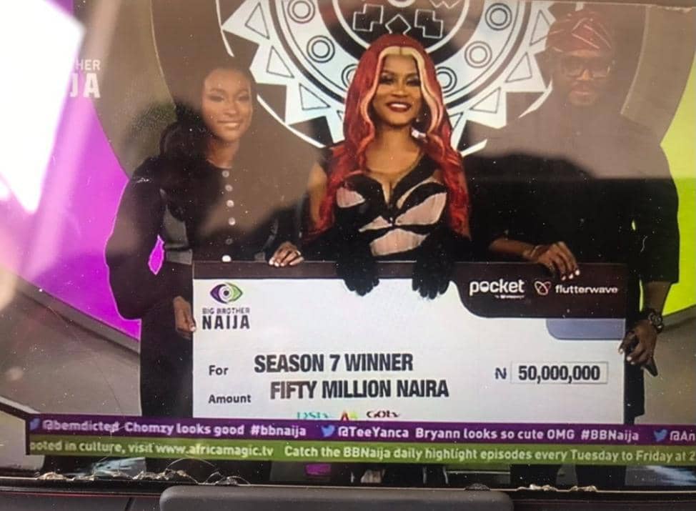 The 25-year-old, who was announced the winner of the 7th season of the reality show on Sunday, October 2, received her 50 million naira cheque and the keys to a brand new SUV car from Innoson Motors during the live prize presentation on Tuesday, October 4.