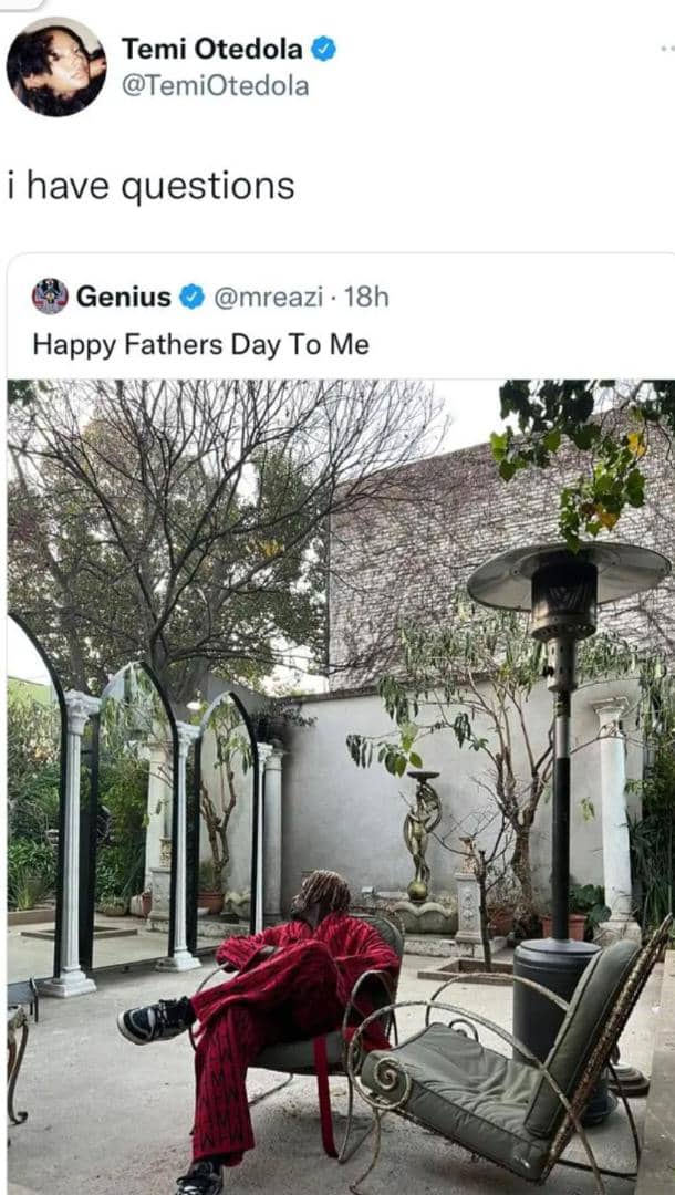 Billionaire daughter and actress, Temi Otedola has queried her fiancé, popular Nigerian singer, Mr Eazi, after he took to Twitter to celebrate himself on Father’s day.