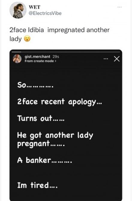 The Veteran musician is trending after Information that he got another woman pregnant hit the internet. According to Gist Merchant, 2baba got a banker pregnant. She claims that the banker is a close friend of the family and 2baba betrayed Annie’s trust by impregnating her.