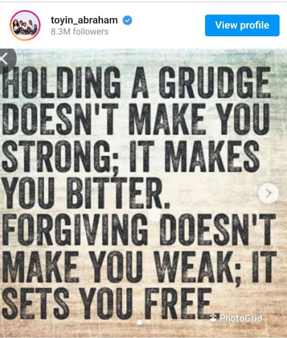 Top Nollywood actress, Toyin Abraham, has now shared a progress report on her issues with fellow film star, Lizzy Anjorin. Taking to her official Instagram page, Mummy Ire, as she is also called, noted that things are now well between her and Lizzy.