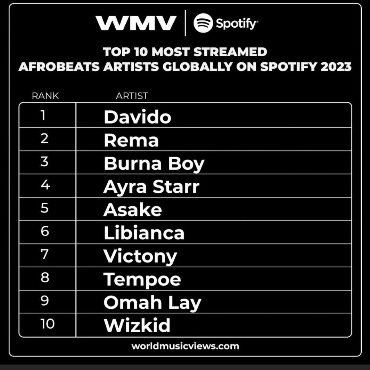 Nigerian musician and songwriter David Adedeji Adeleke, better known by his stage as Davido, announced to his followers on Twitter that he had surpassed artists such as Burna Boy, Wizkid, Rema, and others to become the most streamed Afrobeat artist worldwide.