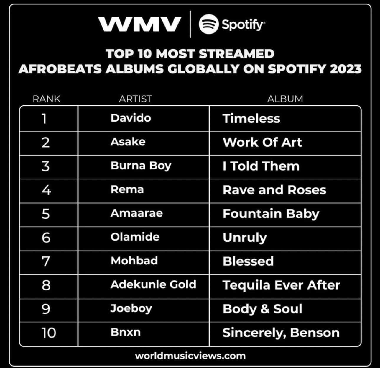 Finally, the “Timeless Album” by Davido became the most streamed Afrobeat album worldwide.