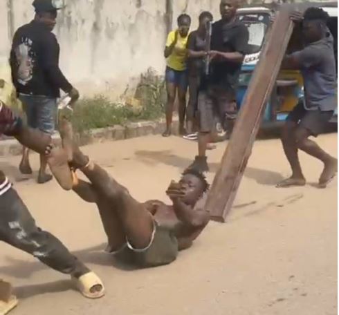 According to an eyewitness who spoke to DailyPost, the suspects allegedly tried to steal a tricycle from the owner in broad daylight when they ran out of luck and were caught.