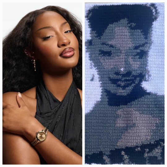 “I hope @temsbaby gets to see this coz I don’t have much followers on here, but after 8925 Stitches and 70 hours, I finished this crochet portrait of Tems, I made this to mark the 1yr anniversary of when I started crocheting. It’s also my first time doing tapestry. I love you Tems,” she wrote.