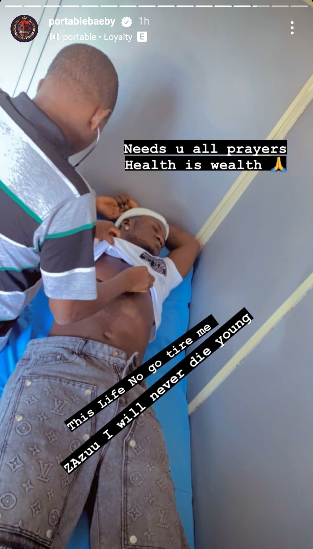 Nigerian singer, rapper, and songwriter, Habeeb Okikiola, popularly known as Portable, has landed in the hospital days after his return from a tour in the United Kingdom.