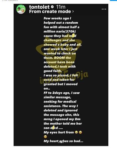 Tonto Dikeh, a Nollywood actress, is now regretting how she handled two followers who approached her for separate reasons.