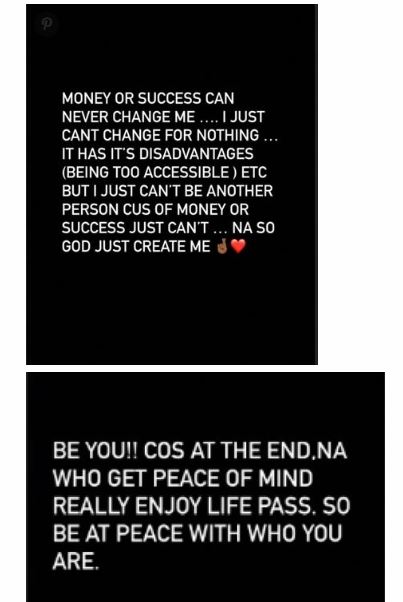 OBO took to his Instagram account to share heartfelt posts in which he stated that success and money can never change him.