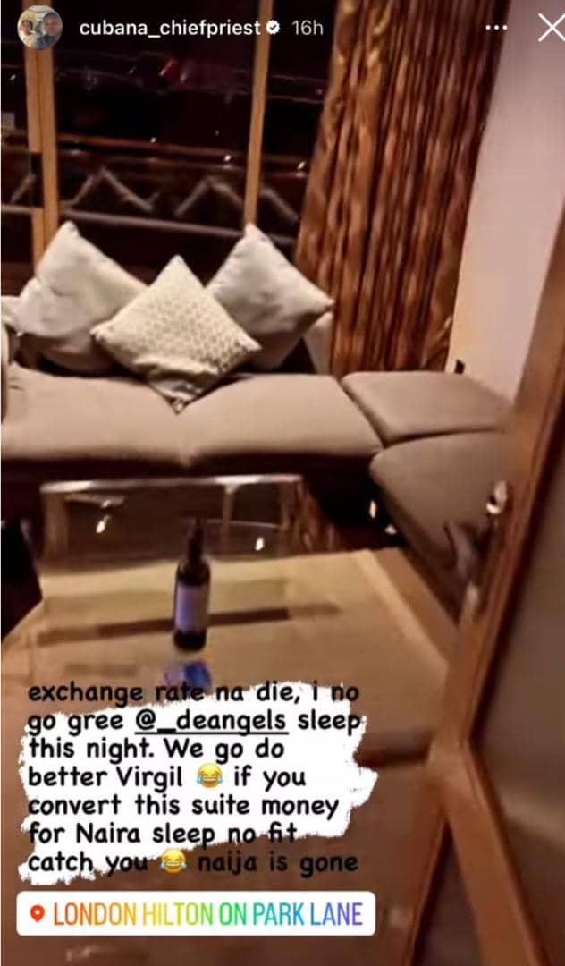 Taking to his Instastory to complain bitterly as pounds hits #830 in the black market, Cubana Chief Priest said he was coming back to where “things are easy”.