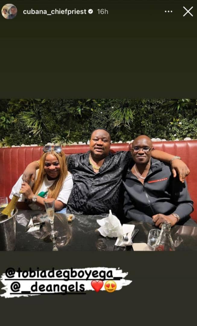 Chief Priest and his wife also went on an outing with controversial UK-based Nigerian pastor, Tobi Adegboyega, last night.