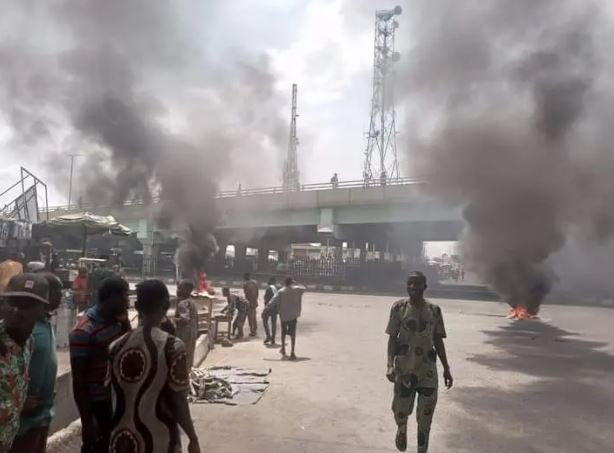 Motorists and residents who were on their way to different places of work hurriedly turned back in panic as the rioters went berserk with bonfire set across the road.
