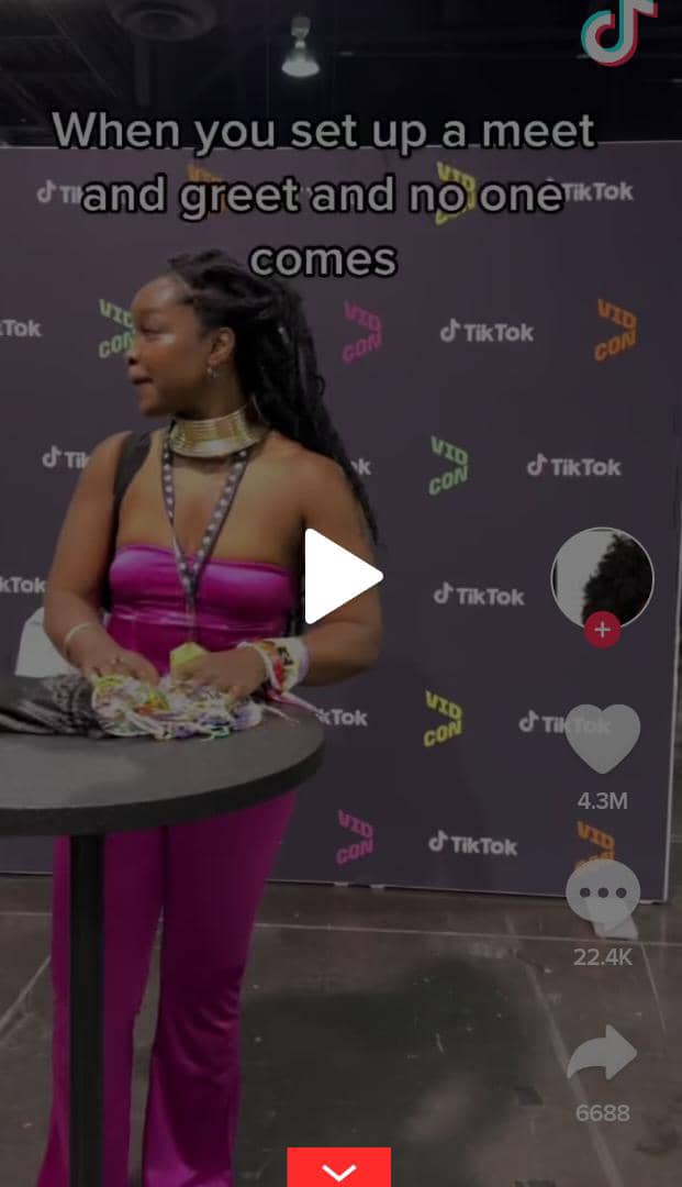 The lady with 1.3 million followers on her verified handle recalled how she once organized a meet-and-greet event but no one came. In a TikTok video of the failed event she shared, the lady is seen standing before a black table-like structure with some African jewelleries.