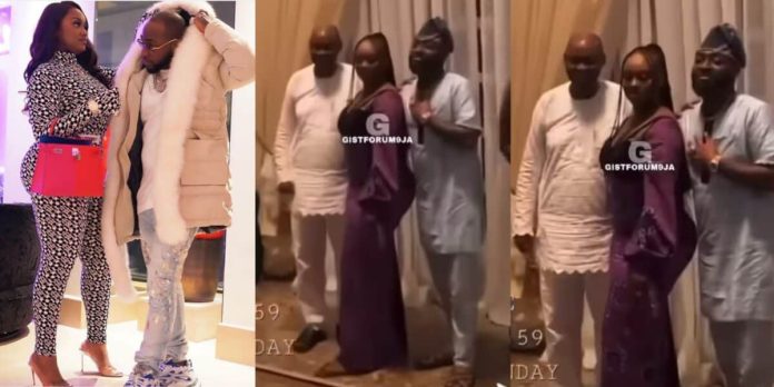 A video making the rounds, showed the beautiful chef posing for a family photo with her husband, Davido and his father.
