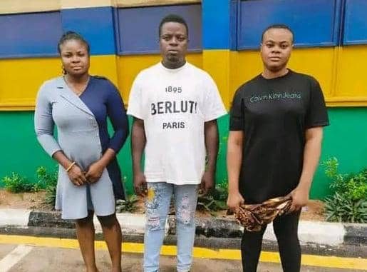 The suspects identified as Obed Chekwube Ugwuanyi a.k.a. MC Sharp (male), 32, Chinenye Agbo a.k.a. Star Ella Ada (female), 26, and Anastasia Onu (female), 26, were arrested for their involvement in a prank video.