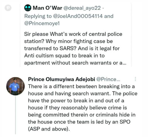 “Sir please What’s work of central police station? Why minor fighting case be transferred to SARS? And is it legal for Anti cultism squad to break in to apartment without search warrants or any case reported?”
