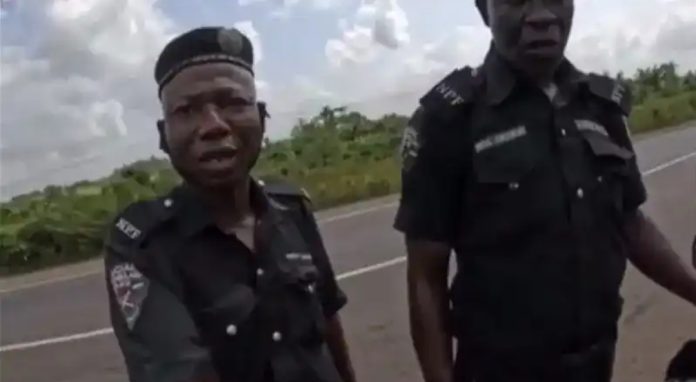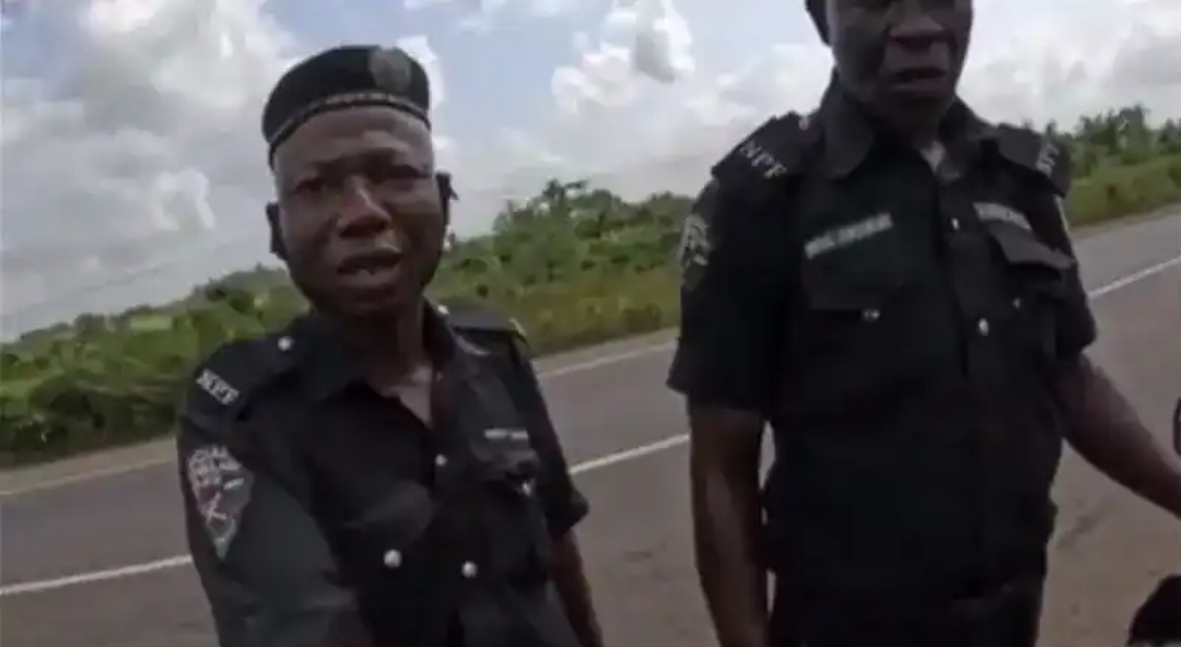 Information Nigeria reports that the officers were captured on camera demanding money from a female biker who was on a tour of Nigeria from the Netherlands.