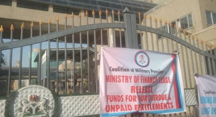 Some retired military personnel grounded activities at the Federal Ministry of Finance in Abuja on Thursday over their unpaid entitlements.