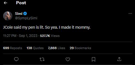 Nigerian singer/songwriter, Simi, has revealed that iconic American rapper, J. Cole, hailed her for her great songwriting skills.