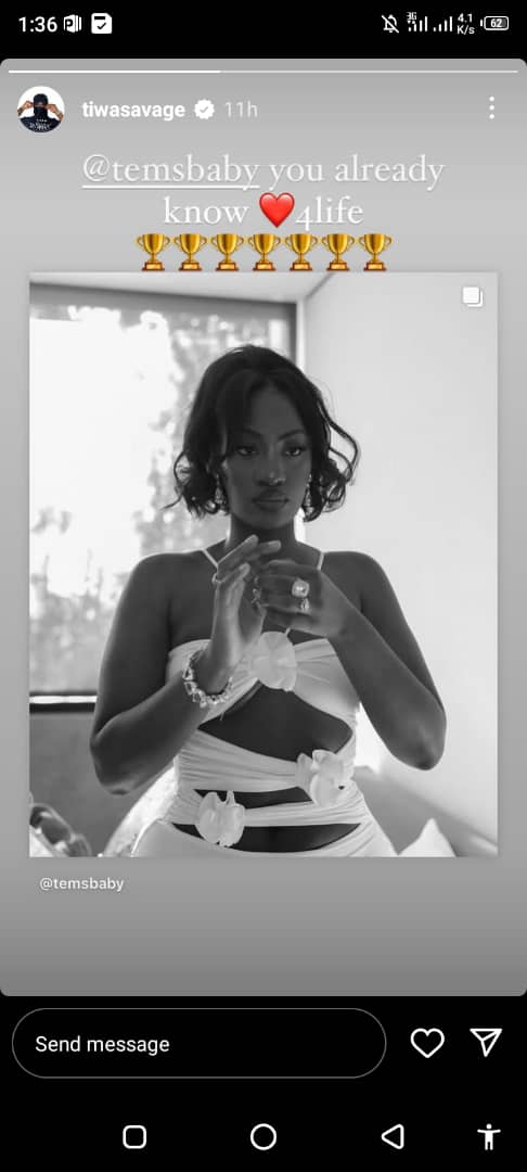 Veteran female singer, Tiwa Savage seems to have settled her perceived beef with fast rising singer, Tems. This is so as she expressed her love for her after the latter won a Grammy award last night.