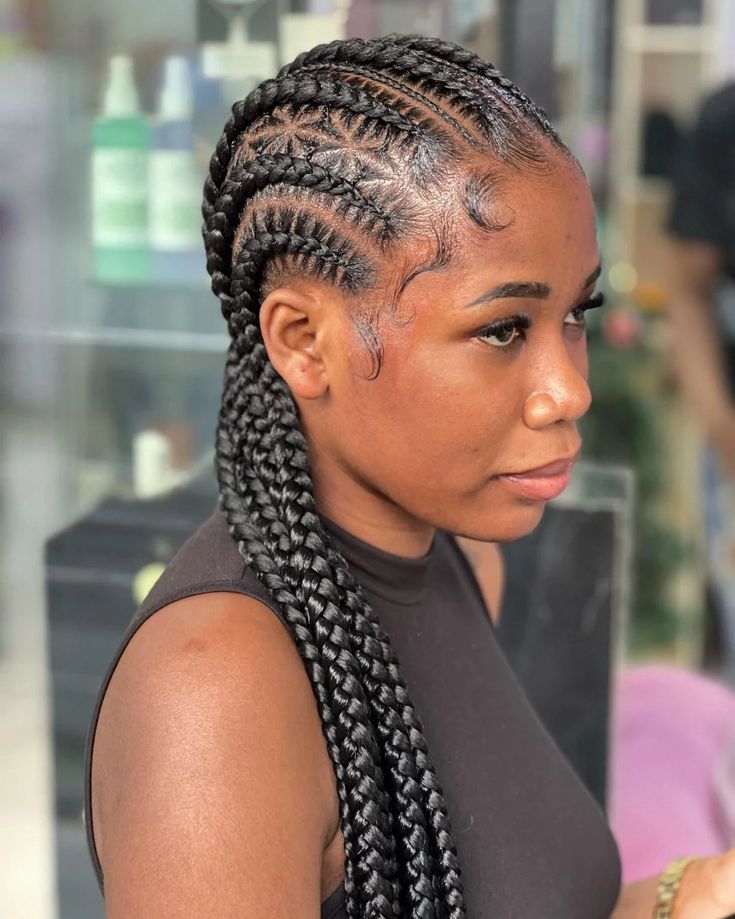 Cornrows is a woman’s best friend, as it’s always there to save the day. Whether it’s on a budget or just to tidy the hair, Cornrows has got you covered.  They can be styled in various patterns and can be worn with extensions or natural hair.