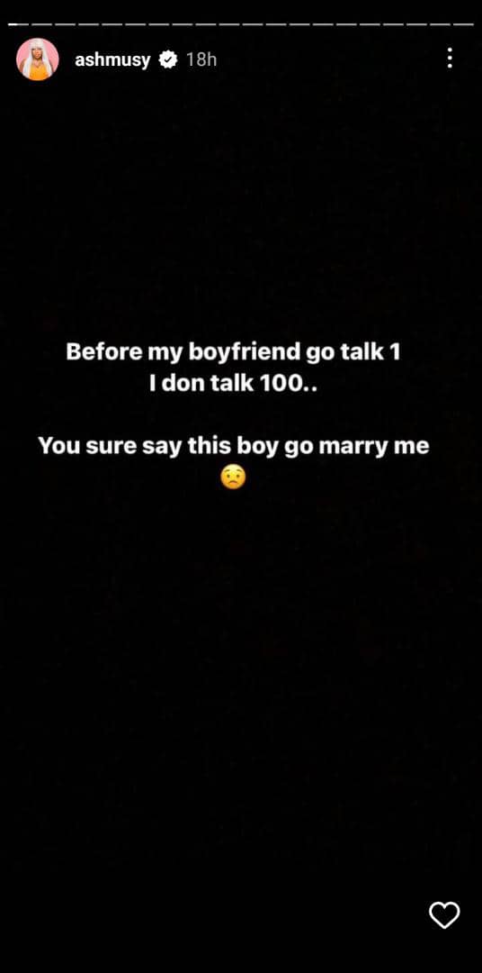 “Before my boyfriend go talk 1 I don talk 100.. You sure say this boy go marry me 😩”.