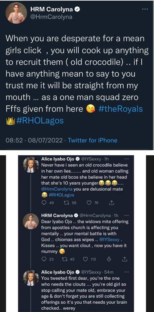 “When you are desperate for a mean girls clique, you will cook up anything to recruit them ( old crocodile) .. if I have anything mean to say to you trust me it will be straight from my mouth … as a one man squad zero Fffs given from here 😘 #theRoyals👑#RHOLagos”
