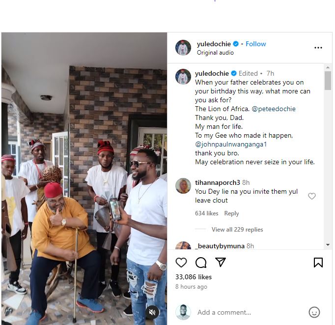 Yul Edochie, a politician and Nollywood actor, couldn’t help but express gratitude to his father, Pete Edochie, for making his birthday special.