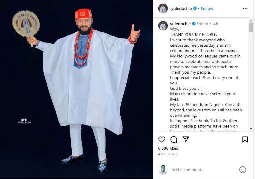 Yul Edochie, who is still ecstatic over his birthday celebration, has written an appreciation post for his colleagues.