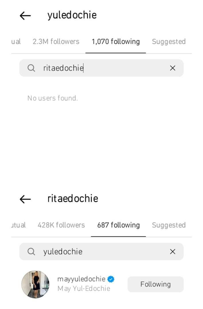 Following this, Yul Edochie has severed ties with the veteran actress, probably for not taking his side. A look at Rita Edochie’s Instagram followers shows that she has also unfollowed the actor.